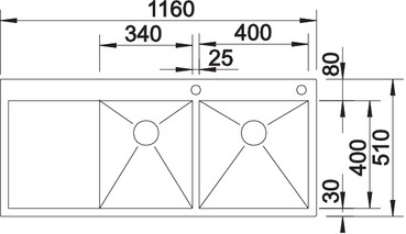 Схема встраивания для мойки Blanco Zerox 8S-IF/A нержавеющая сталь полированная чаша слева 521650