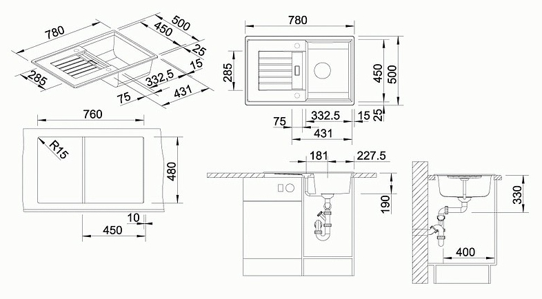 Схема встраивания 5 для мойки Blanco Zia 45 S темная скала 518937