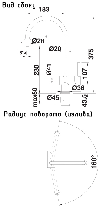 Схема встраивания для смесителя Blanco Filo-S Silgranit белый 512762