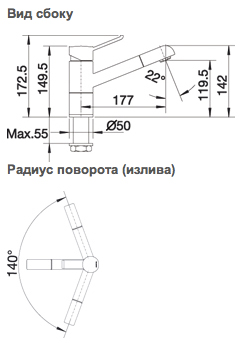 Схема встраивания для смесителя Blanco Zenos-S chrome/Silgranit антрацит 517819