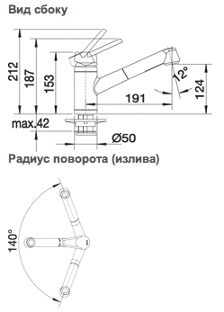 Схема встраивания для смесителя Blanco ACTIS-S SILGRANIT 517631