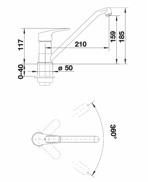 Схема встраивания для смесителя Blanco Wega Silgranit 511115