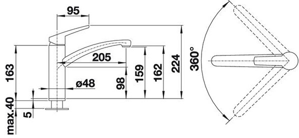 Схема встраивания для смесителя Blanco Nea Silgranit 519409