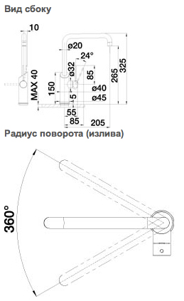 Схема встраивания для смесителя Blanco Jil нержавеющая сталь 517578
