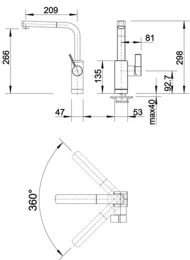 Схема встраивания для смесителя Blanco Levos-S нержавеющая сталь 514917