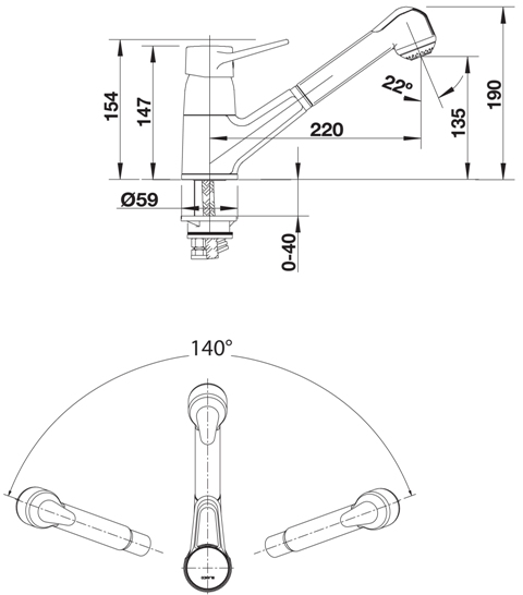 Схема встраивания для смесителя Blanco Orion-S нержавеющая сталь 511268