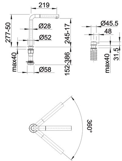 Схема встраивания для смесителя Blanco Periscope-S-F II нержавеющая сталь 516671