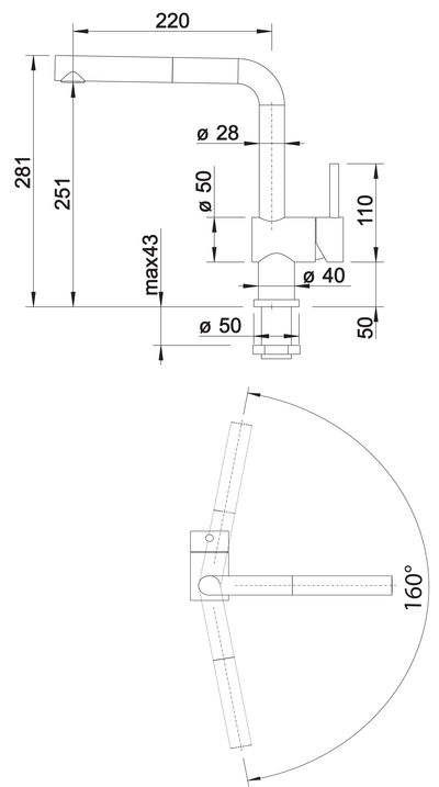 Схема встраивания для смесителя Blanco Linus-S Vario нержавеющая сталь 518406
