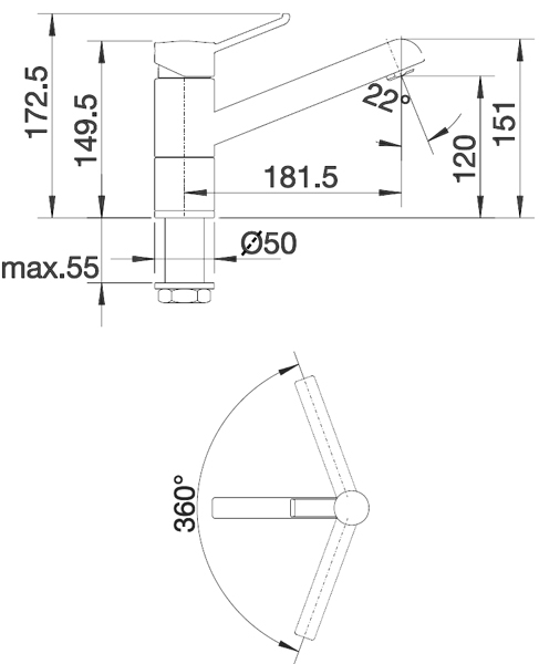 Схема встраивания для смесителя Blanco Zenos нержавеющая сталь 517801