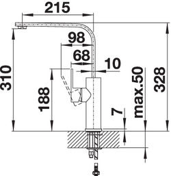 Схема встраивания 1 для смесителя Blanco RODALIS нержавеющая сталь 523125