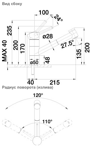 Схема встраивания 1 для смесителя Blanco Tivo-S chrome/Silgranit алюметаллик 517611