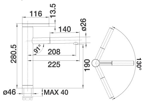 Схема встраивания для смесителя Blanco Linee-S Silgranit белый 518441