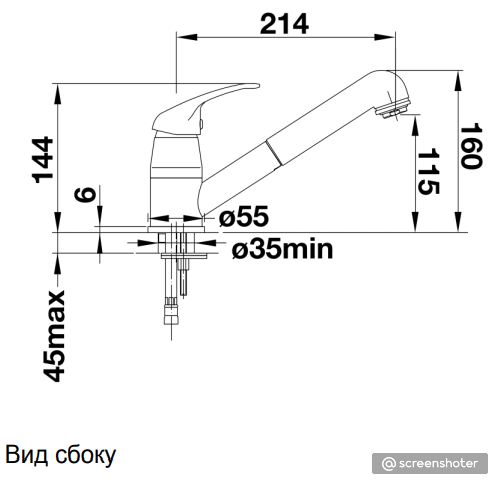 Схема встраивания 1 для смесителя Blanco Daras-S Silgranit алюметаллик 524192