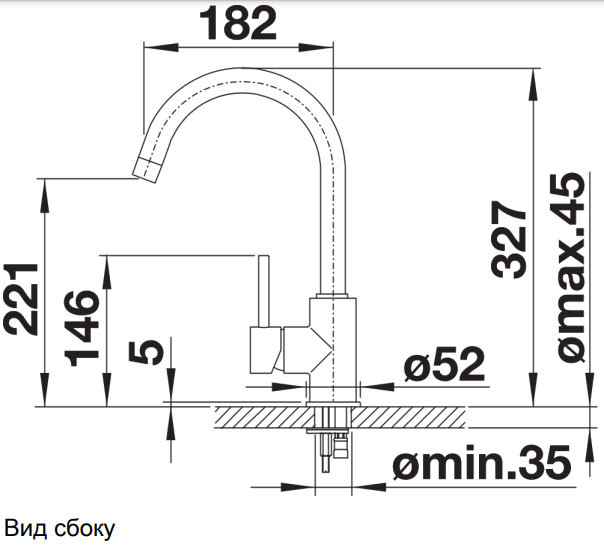 Схема встраивания 1 для смесителя Blanco MIDA Silgranit кофе 524208