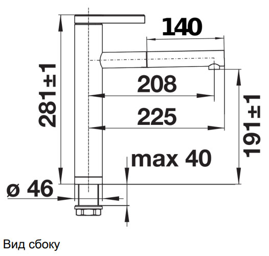 Схема встраивания 1 для смесителя Blanco Linee-S нержавеющая сталь матовая 517593