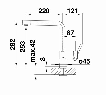 Схема встраивания 1 для смесителя Blanco Linus нержавеющая сталь полированная 517183