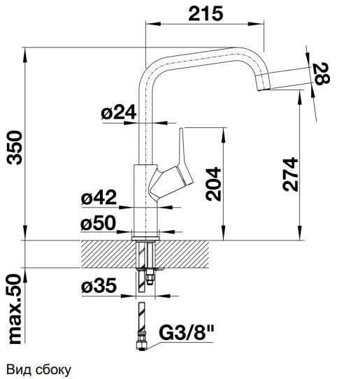Схема встраивания 1 для смесителя Blanco JURENA хром 520764
