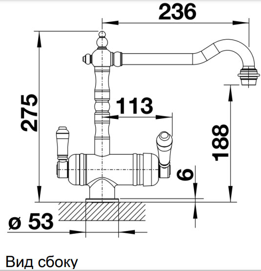 Схема встраивания 2 для смесителя Blanco SORA полированная латунь 524218