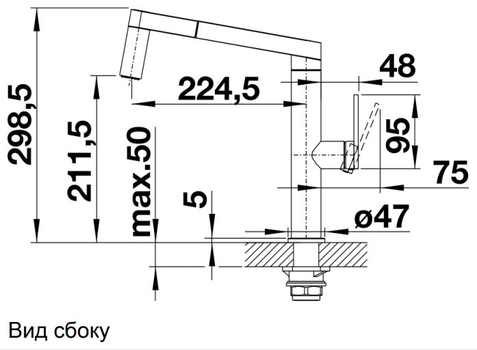 Схема встраивания 1 для смесителя Blanco PANERA-S нержавеющая сталь полированная 521547