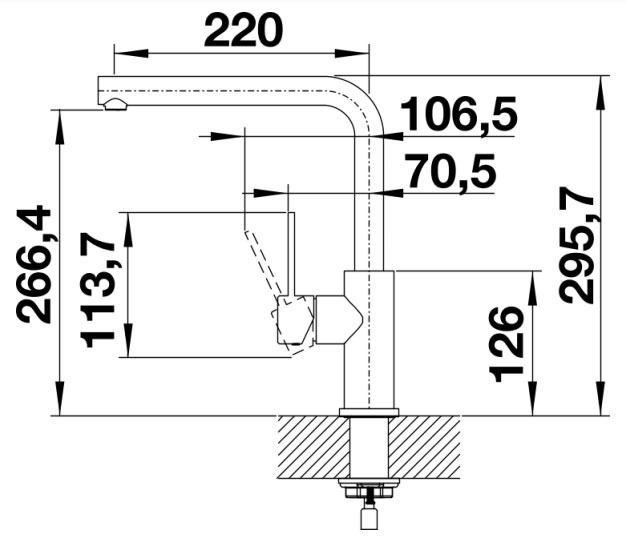 Схема встраивания 1 для смесителя Blanco LANORA нержавеющая сталь полированная 523122