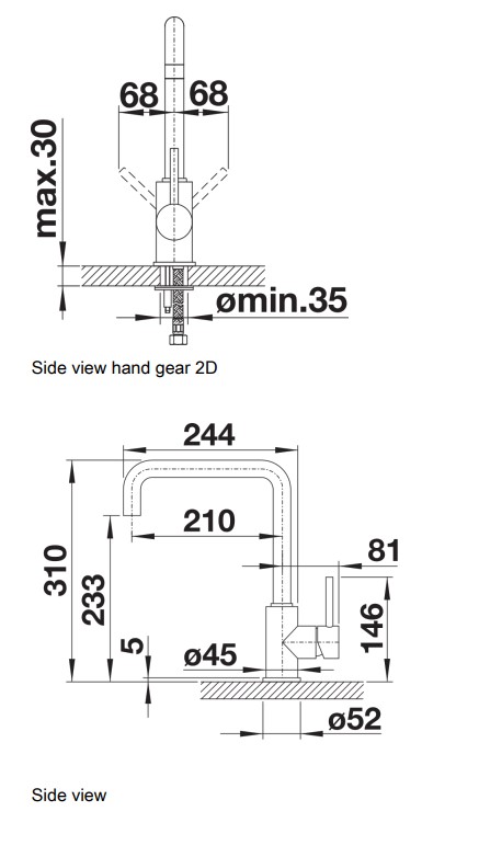 Схема встраивания для смесителя Blanco MILI Silgranit матовый черный 526665
