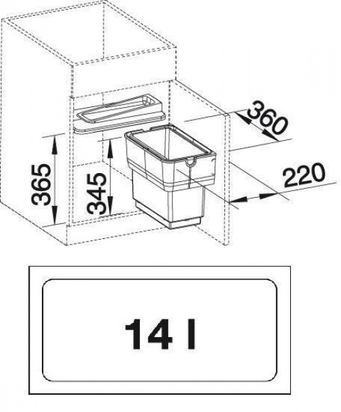 Схема встраивания для система сортировки мусора Blanco Select Singolo 512880