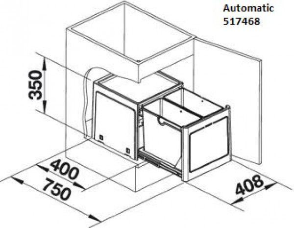 Схема встраивания 1 для система сортировки мусора Blanco Select Botton Pro 45 Automatic 517468