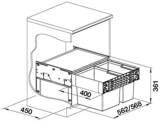 Схема встраивания 1 для система сортировки мусора Blanco Select II 60/2 526203