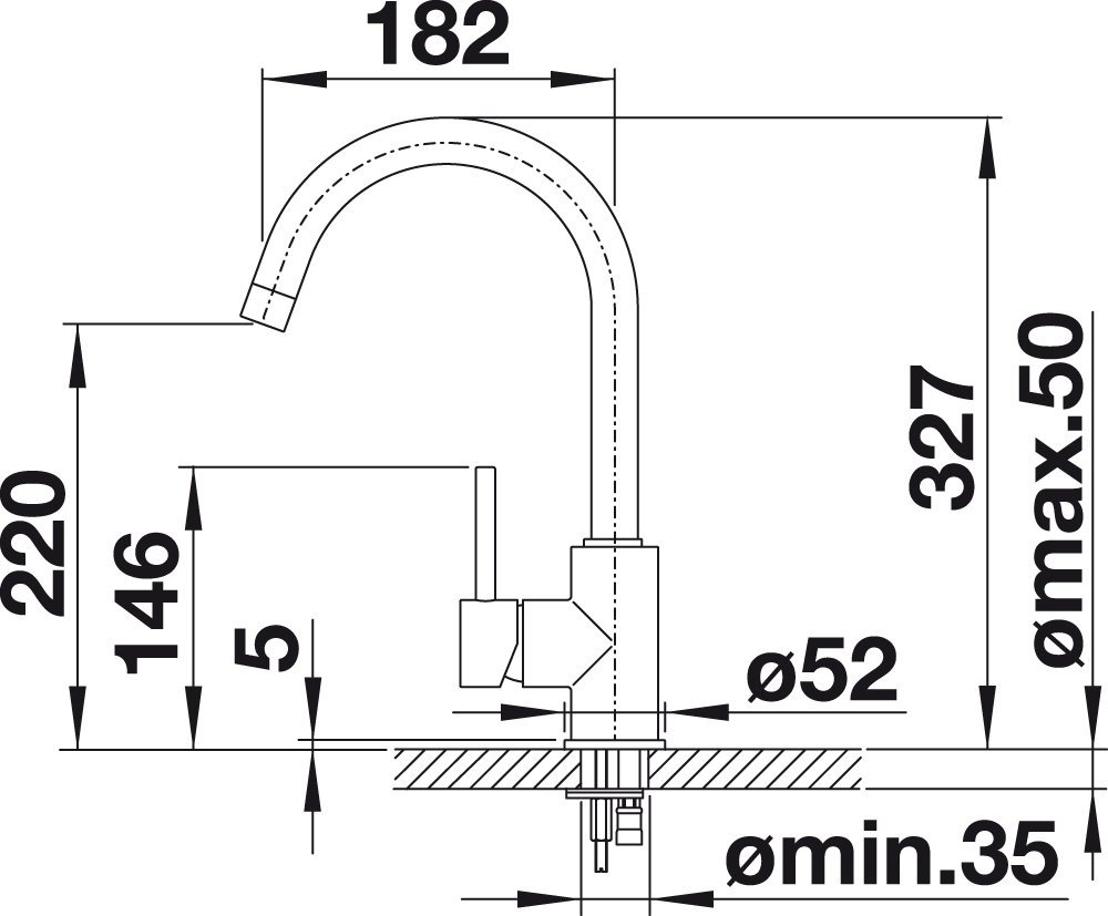 Схема встраивания 1 для смесителя Blanco MIDA Silgranit черный матовый 526649