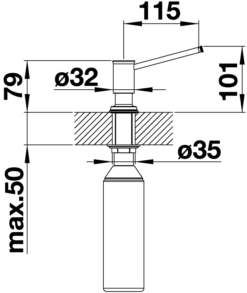 Схема встраивания 2 для дозатор для жидкого мыла Blanco LIVIA 521293